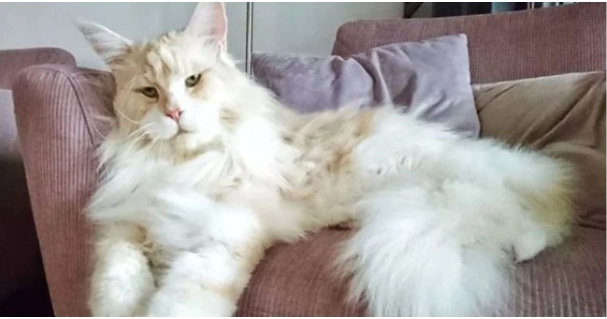 Let’s introduce you to Lotus, a Maine Coon cat whose size is nothing short of astonishing. Imagine a feline friend…
