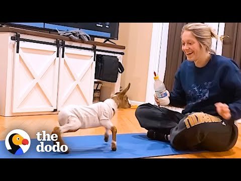 When Peaches the baby goat was rescued, she couldn't stand or walk. With the help of her new mom and…