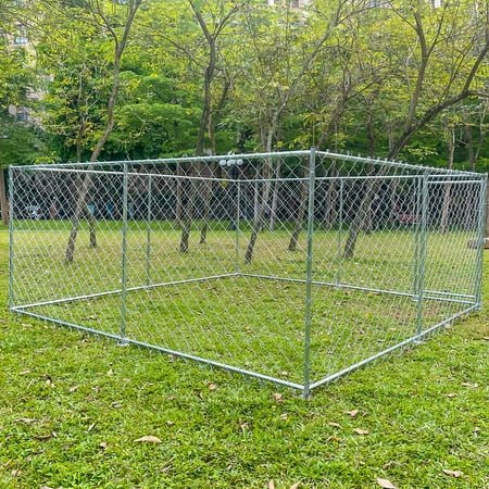 Durable material, galvanized surface, sturdy frame and spacious interior all support an ideal outdoor house for your pets. Large space provides plenty of room for pets to enjoy exercise, play, and other outside activities without feeling bound. The cage is a single door and can be locked. The specially designed latch cannot be opened by your pet to ensure its security inside. Easy installation. Each part is marked with a specific letter corresponding to the simple and clear manual for quick assembly. Not only suitable for dogs, but also suitable for all kinds of non-climbing outdoor pets, like chicken, rabbit, duck, guinea pig, etc. Overall Dimension: 118.1″ L x 118.1″ W x 49.2″ H, Assembly required. Upgrade Your Purchase with a FREE Sunshade Cover – A Valued Bonus Just for You!