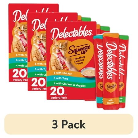 Elevate treat time with Delectables Squeeze Up Lickable Cat Treats Variety Pack! These convenient handheld tubes deliver an irresistible, creamy purée crafted with high-quality cage-free chicken, savory wild-caught tuna, and real vegetables. Perfect for interactive bonding moments, a hydrating cat snack to boost moisture intake, or a delicious food topper for even the pickiest eaters. These 100% grain-free cat treats are made without fillers, artificial colors, or preservatives, offering a premium indulgence. Delectables Squeeze Up is available in different formulations catering to every cat life-stage! Whether you have playful kittens, active adult cats, or wise senior felines, you can give your cat the joy of a healthy, delicious treat that supports their well-being and happiness at every age.