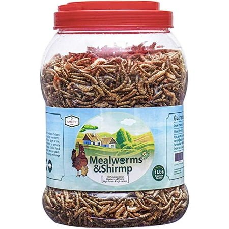 HIGH IN PROTEIN: Amzey Dried Mealworms & Shrimp are match made in love, essential source of proteins & nutrients for Chickens, Birds, Duck, Geese, Reptiles, Turtles, Hedgehogs, etc BOOSTS IMMUNE SYSTEM & IMPROVES HEALTH : Our mealworms contain essential source of nutrients for baby chicks, birds, blue jays, also 100% ladies APPROVED! 100% NATURAL& SAFE : Non-GMO, preservative and additive-free. Have a piece of mind when feeding your animals with our high-energy all-natural product. EASY TO STORE: No refrigeration required. Store and Reuse with a long shelf life. FANTASTIC VALUE: Even more treats and higher quality for your ladies for less price THEN OTHER BRANDS! DETAILS NEW (1LB) Twist Off Lid Bucket!