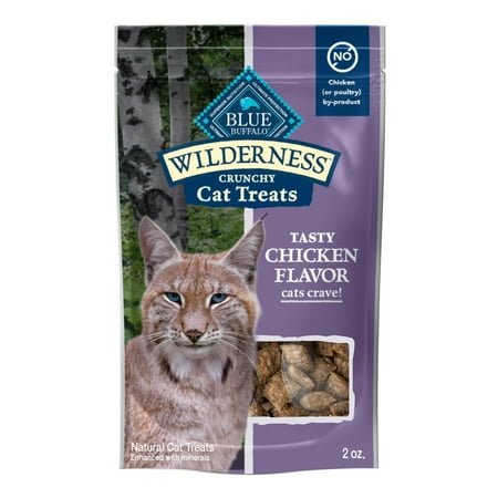 STARTS WITH REAL CHICKEN: BLUE Wilderness meat-rich grain free cat treats start with more of the delicious chicken cats naturally love CRUNCHY CAT TREATS: These grain free cat snacks are oven baked for a wholesome satisfying crunch felines of all ages find irresistible NATURAL AND HEALTHY: Each tasty cat treat is only 15 calories NO CHICKEN OR POULTRY BY-PRODUCT MEALS: Plus NO corn wheat soy artificial flavors or preservatives Contains one (1) 2-oz. Bag of BLUE Wilderness Grain Free Crunchy Cat Treats Chicken ENHANCED IMAGERY: We have enhanced our digital product packaging to highlight our products’ ingredients and essential benefits. While the physical packaging will differ slightly, all information is accurate