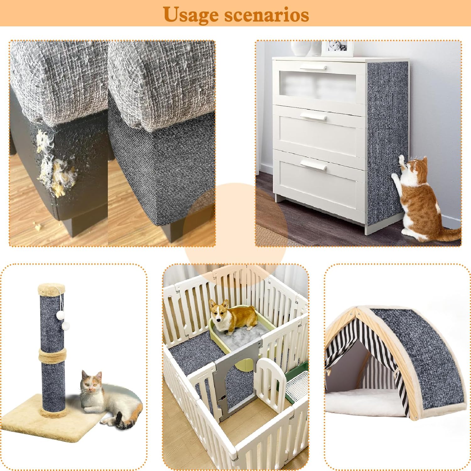 【Installation】Easy installation with self-adhesive backing, simply trim to desired shape and size, peel off the backing film, and apply to desired location.for example scratching post replacement,cat wall scratcher.
