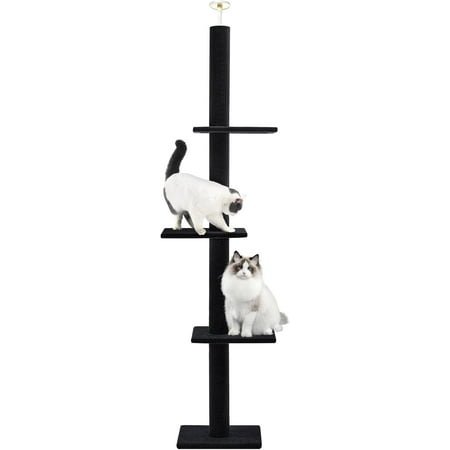 Climbing Tree with Adjustable Height: The whole cat tree consists of 4 levels push-covered platforms, the tension rod on the top can be adjusted to a preferred height from high to low(7-9.5 Foot) accommodate room ceiling. Once the tension rod is compressed enough, your cats can challenge themselves climbing to the top and enjoy the view from above.