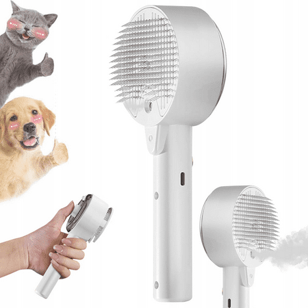 Superior Hair Collection & Deep Cleaning: The 2025 Upgraded 4-in-1 Cat Steam Brush features 140° curved stainless steel bristles, ensuring unmatched grooming performance. The cat hair brush penetrates deep into both long-haired or short-haired cats, effectively removing undercoats and loose fur. By reducing shedding and preventing hairballs, it promotes a healthier, shinier coat. A must-have in every pet hair removal kit for cat owners, it’s perfect for daily cat grooming routine. Gentle Massage & Scratch-Free Grooming: This steam cat brush is designed with rounded tips for a gentle, soothing massage that prevents scratching, making grooming a stress-free experience for your cat. Perfect as a cat shedding brush or grooming comb, it ensures a comfortable and effective grooming session, leaving your pet relaxed and well-groomed. Dual Spray Modes & Visible Water Tank: This cat brush with steam offers two spray modes, allowing you to switch between fine mist and thick mist based on your pet’s fur type and tolerance. The transparent cover makes it easy to monitor water levels, ensuring optimal mist output. As a top choice among cat grooming tools, this steam brush for cats effectively reduces static and flyaway fur, making it an ideal steam pet brush for cats, especially for long-haired cats and dogs. Safety First & 12-Minute Auto Pause: The spritz defur comb for cats is designed with safety in mind, automatically pausing the spray after 12 minutes of continuous use to prevent dry burning. Simply press the button to resume spraying. To avoid over-wetting, lightly mist your cat’s fur for 10-30 seconds, then groom and repeat as needed for optimal results. This safe and reliable steamy cat brush is the perfect choice for pet owners. Quick Self-Cleaning & Durable Materials: This pet steam brush features a one-click fur release button, making cleanup effortless. Crafted from durable ABS plastic and stainless steel, this cloud care cat brush is built to last. Whether you’re using it as a cat steam brush for shedding or a pet grooming brush, it’s an essential addition to every pet owner’s grooming kit. Suitable for all long-haired and short-haired cats, dogs, rabbits, and other furry pets.