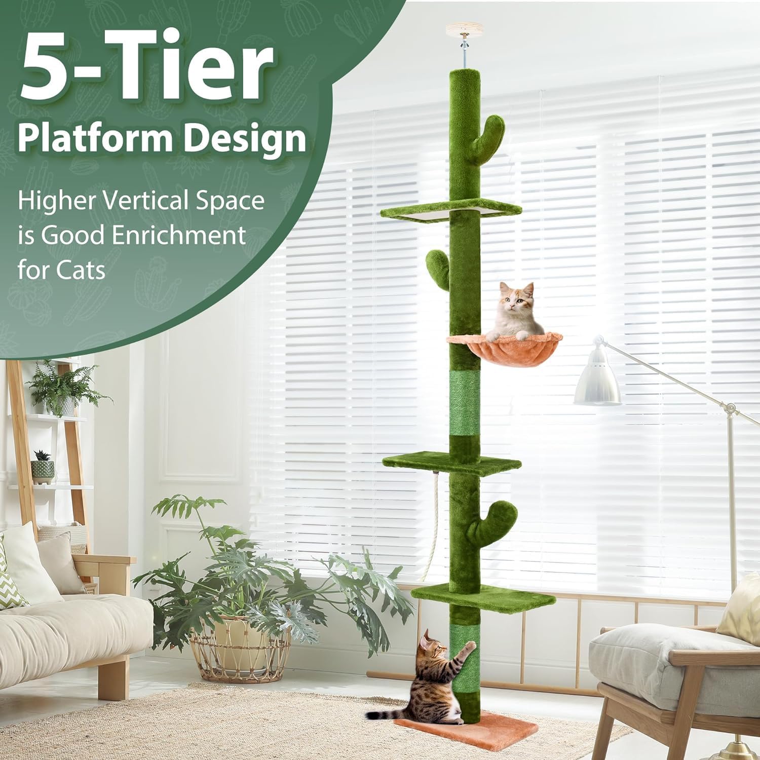 🐈Exercise and Physical Activity: A 5-tier platform design cat tree with higher vertical space can provide excellent enrichment for cats. Climbing up and down the tiers of a cat tree provides them with a fun and engaging way to get their daily dose of physical activity.
