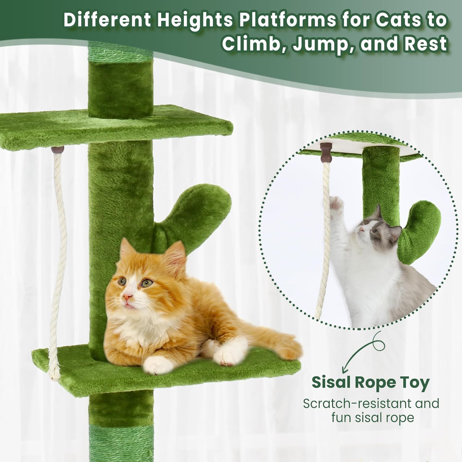 🐈Dimension: The main body of the cat tree is 87.8in high, and can be adapted to the ceiling of 89-109 in through splicing and adjustable screw rods. By utilizing the vertical space from floor to ceiling, this cat tree design optimizes space utilization. It’s a great solution for cat owners who want to provide their cats with vertical enrichment while minimizing clutter.