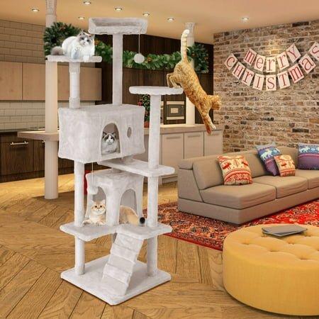 【Multifunctional Design】This cat tree condo is a perfect piece of furniture for families with multiple kittens. With the durable and multi-tiered design, it will entertain your cats for hours and give them a safe place to play and lounge upon. The 3 top perches offer perfect spots for resting and watching outside, enclosed 2 condos for hide-n-seek, and 3 sisal rope scratching posts for developing positive scratching behavior. Our cat tree condo fits nicely into a corner but is sturdy enough to stand alone as well. The safety strap helps prevent damage and injury from intensive jumping and leaping by securing the cat tree to the wall. 【Sturdy and stable】The cute cat tree has a wide and sturdy base, the cute cat tower is reinforced to prevent your cat from standing still or falling when scratching, jumping or climbing. The large cat tower is suitable for indoor cats, you don’t have to worry about the cat tree accidentally tilting or swaying, the tall cat tower will give your cat the best protection and is a fun cat tree.cat tree tower cat trees cat scratching posts cat tree tower cat trees cat condo cat towers 【Large vertical space】The design of the tall cat tree makes it take up almost no floor space, the tall cat tower saves floor space, the cat tree large and heavy is suitable for many felines large vertical space, the carefully designed tall cat tower makes each cat have its own piece of territory, this is the secret of modern cat tree indoor harmony The tall cat tree is suitable for indoor cats.cat scratch post tall cat tree cat tower for large cats 【Material Safety】Our cat tower is a wooden cat tower made of high quality particle board , cat tree covered with skin-friendly faux fur, cat tower spacious and comfortable soft cloth surface, your kitten can stretch out on the large cat tower perch and curl up in the plush nest, give your cat a super soft and warm resting place with the cute cat tower.cat tree cat scratching post 【Easy installation and worry-free after-sales service】 Our cat trees have detailed illustrations, cat towers have step-by-step instructions and tools to help you install heavy duty cat trees for big cats, don’t worry about assembling our cat trees! If you have any questions about our heavy duty cat tree, please feel free to contact us via email and we will get back to you within 24 hours!