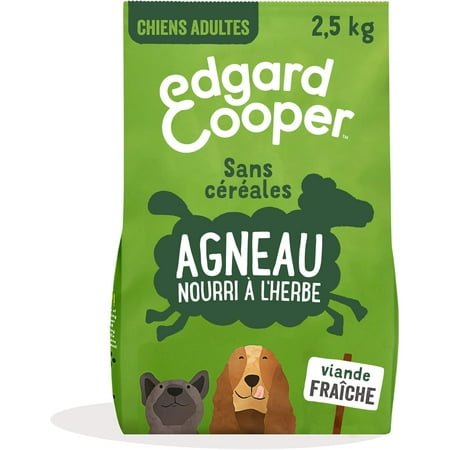 NOURRITURE NATURELLE POUR CHIEN AVEC UN MAX DE VIANDE FRAICHE remplie de savoureuses protéines de qualité (sans farine de viande, sans viande séchée ou déshydratée), Sans OGM – Cuisson lente à basse température pour préserver la saveur et les bienfaits nutritionnels des ingrédients. Convient aux petits et grands chiens adultes stérilisés ou actifs de toutes races. Cette recette est SANS CEREALES et SANS GLUTEN et contient des PRE-BIOTIQUES pour une digestion facile et un intestin en bonne santé. CROQUETTES avec plein D’INGREDIENTS NATURELS de l’AGNEAU, une viande pleine d’acides aminés essentiels et de graisses alimentaires pour maintenir un niveau d’énergie équilibré. Dans cette recette la POMME, CAROTTE, BETTERAVE, MYRTILLE, POIRE et CHOU apportent des FIBRES, VITAMINES A, C, K, ANTIOXYDANTS essentiels, des PHYTONUTRIMENTS, MINERAUX, POTASSIUM et du bêta-carotène. UNE COMPOSITION QUI REPOND AUX BESOINS DU CHIEN Nos recettes simples et saines sont développées par des experts universitaires pour fournir une nutrition optimale à partir d’ingrédients naturels. Comme si votre chien avait son coach personnel! Pour une alimentation saine, complète et équilibrée, nos recettes savoureuses incluent un super mélange de fruits & légumes, des herbes, des végétaux riches en nutriments pour un coup de boost supplémentaire plein de fibres bénéfiques pour la digestion. NOS ENGAGEMENTS PRODUITS FRAIS Toutes nos recettes naturelles sont faites à base de viande et d’aliments frais, cuisinés avec soin pour préserver les goûts et nutriments – NOUS AIMONS LA NATURE De nos emballages en papier FSC et boîtes recyclables, à notre engagement à atteindre l’objectif Zero Carbon en 2025, nous faisons tout pour protéger la nature – ENTRE COPAINS, ON SE SOUTIENT Nous reversons 1% de nos ventes à des associations pour mettre fin à la souffrance des chiens et chats errants NOS CONSEILS 01 TRANSITION VERS UNE NOURRITURE NATURELLE Sur 4 jours, augmentez graduellement la quantité de nourriture Edgard & Cooper dans sa gamelle, tout en diminuant la quantité de nourriture habituelle – 02 EAU Assurez-vous que de l’eau fraîche est disponible à tout moment, surtout lors des repas – 03 CONSERVATION Fermez bien leur sac à croquettes et rangez-le dans un endroit frais et sec, à l’abri de la lumière directe. Une fois ouvert, il restera frais pendant trois mois.