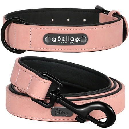 Type:Soft Leather Personalised Dog Collar with Leash set for Small Medium Large Dogs Material:Soft Leather 5 Colors:Pink/Dark Blue/Purple/Coffee/Green Strong metal buckle, vivid colors and stylish look; Stainless steel nameplate where we will engrave the pet’s name and phone number; Comfy 2-layer design.inner soft leather padded,great for dog’s ware; Please leave us the engraved information like this Sample Text: Millie*123 456 7890 Size S: Neck Adjustable 10″-12″(25-31cm) Width 0.6″(1.7cm) Lesh: 5/8″*48″(120*1.5cm) M: Neck Adjustable 11″-14″(27-34cm) Width 0.8″(2.2cm) Lesh: 5/8″*48″(120*1.5cm) L: Neck Adjustable 13″-17″(34-43cm) Width 1.0″(2.7cm) Lesh: 3/4″*48″(120*1.5cm) XL: Neck Adjustable 17″-21″(43-53cm) Width 1.2″(3.2cm) Lesh: 3/4″*48″(120*1.5cm) 2XL: Neck Adjustable21″-24″(53-62cm) Width 1.4″(3.7cm) Lesh: 3/4″*48″(120*1.5cm) Note: Please measure your pet’s neck size beofre you make an order. Please feel free to send us message if you have any questions