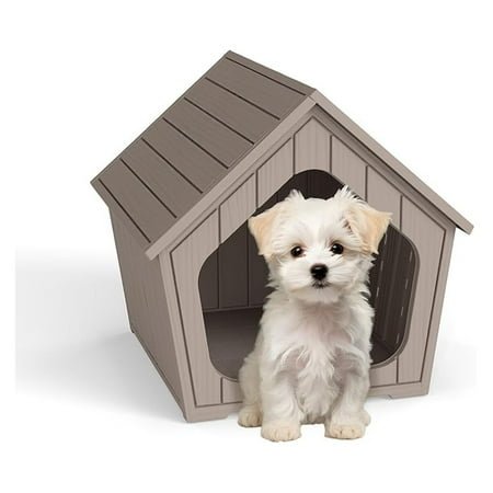 Resin Dog House, Weatherproof Outdoor Indoor Shelter Product Description This charming Resin Dog House combines a classic look with modern durability. Its weatherproof design is ideal for use outdoors in the garden or as a cozy indoor bed nook. Perfect for small to medium pets, it provides a reliable and stylish shelter that stands up to the elements. Key Features Weatherproof Resin Build: Resistant to rain, sun, and rust, ensuring long-lasting performance outdoors. Attractive Design: Looks like a traditional wooden house but without the maintenance, won’t rot or peel. Cozy Interior: Provides a secure, den-like space that makes pets feel safe. Ideal for S/M Dogs: The perfect size for smaller breeds to use as their own private space. Low Maintenance: Simply wipe clean or rinse with a hose. Product Details Dimensions: Varies by model (Check specific listing) Material: Durable Resin Color: Assorted (Typically Tan or Grey) Installation Required: Minimal to no assembly required.
