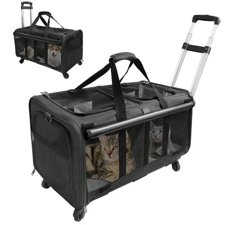 ELEGX Double-Compartment Pet Rolling Carrier with Wheels for 2 Pets,for Up to 35 LBS,Cat Rolling Carrier for 2 Cats,Super Ventilated Design,Ideal for Traveling/Hiking /Camping