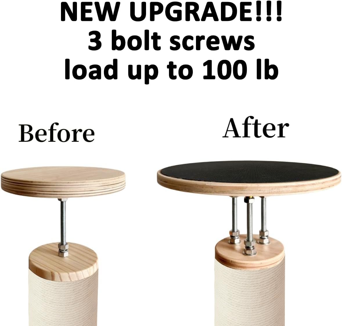 NO NEED TO DRILL HOLE ON CEILING: This tall cat tree is made with sturdy 4.8-inch thick posts, which are thicker than similar products on the market. The reasonable height design ensures that the reinforced springs at the top have maximum tension for solid support without drilling holes in the ceiling. Non-slip rubber mats are equipped for added safety.