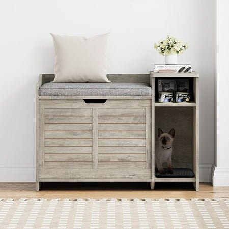 Effortless Flip-Up Design: Eliminate the hassle of bending over to clean your cat’s litter with our convenient top-opening design. This feature minimizes strain on your back and legs, making maintenance a breeze—perfect for those who prefer not to squat down. Enjoy reduced pressure on your lumbar spine and legs while keeping your space tidy. Versatile Litter Box Furniture: More than just a litter box, this stylish piece protects against dog interference and doubles as a cozy spot for your small pet to sleep and play. It seamlessly blends functionality with aesthetics, enhancing your home décor. Privacy for Your Feline: Cats are naturally cautious creatures. Our litter box enclosure offers a secure, private haven for your furry friend, allowing them to feel safe during potty time. Give your cat the comfort of their own secluded space! Product Specifications: Measuring 33.8″ L x 19.6″ W x 24.2″ H (including legs), with an inner dimension of 23″ L x 19″ W x 16″ H and an entrance of 8.6″W x 13.6″H, this litter box is ideal for cats weighing up to 11 lbs. Please note that it is not suitable for larger breeds like Maine Coons. Simple Assembly: Our hidden litter box furniture comes with clear instructions and all the necessary tools for easy assembly. For added durability, be sure to tighten the screws for a sturdy and reliable setup.