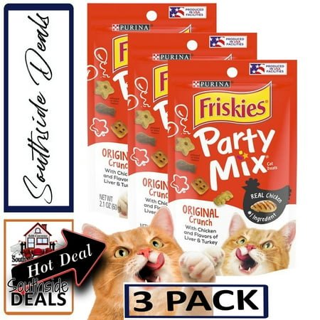 Friskies Cat Treats, Party Mix Original Crunch, 2.1 oz. Pouch – 3 Pack