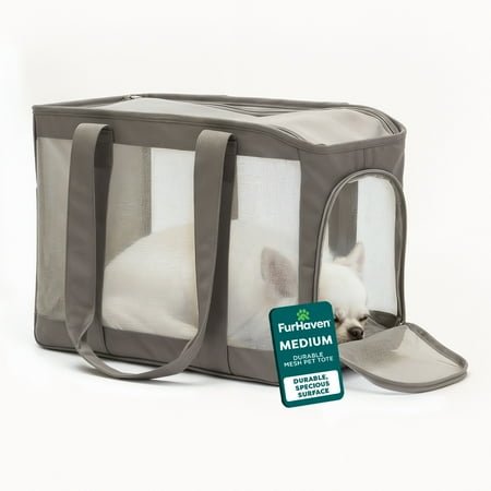 Perfect For Travel: Our versatile mesh pet tote is specially designed for cats and small dogs who need safe, comfortable transportation. This stylish carrier accommodates pets up to 16 lbs, with dimensions supporting pets up to 13″L (chest to rear) and 10″H. A perfect travel solution for veterinary visits, errands, and adventures. Breathable Mesh Design: Our innovative four-sided durable mesh panel construction provides maximum airflow while keeping your pet secure. This breathable pet carrier allows optimal visibility for both you and your pet without opening the tote, reducing anxiety and creating a calm travel experience. Dual Access Entries: Choose what works best with our flexible design featuring fully unzippable top and side entries. Load nervous pets from the side or lift them in from the top, whatever makes your pet most comfortable. Once inside, locking zippers prevent escape attempts and keep your pet safely contained. Secure And Stable: We engineered this carrier with safety-first features including a stability board that gives pets a solid surface to sit, stand, or lie down. The interior tether clips onto harnesses for added security. Long, padded comfort straps distribute weight evenly, making it easy to carry your pet for extended periods. The FurHaven Promise: Pets are family. That’s why every product we create is designed to be simple, trustworthy, and fit seamlessly into your family’s life. Your purchase is backed by 25 years of experience and our dedicated US-based customer support.