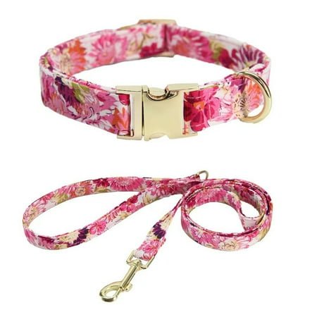 Girl dog collar, cute floral dog collar with detachable bow flower and matching leash Girl dog collar, cute floral dog collar with detachable bow flower and matching leash 1. The girl dog collar is made of cotton fabric with a lovely floral pattern. The bow flower is detachable and super nice to wear on the buckle, on her back, and she doesn’t even know it’s there. Or can be attached to any other collar as required. 2. This large dog collar can be easily adjusted to fit the neck. Collar Width: 1. Matching belt length: 5 feet. Before ordering, please accurately measure your pet’s neck circumference and make sure to leave only 2 fingers between the collar and the dog’s neck. 3. The button is rose gold metal, which is more beautiful and stronger than plastic buttons. Get on and off easily with the quick release buckle. You can engrave your dog’s name and phone number printed on the buckle at your nearest hardware store. 4. The matching floral belt is another bonus! Just attach it to the belt D-ring and you’re good to go. She will look like a princess in this beautiful and stylish bow collar and make people feel more comfortable when approaching her in public.