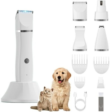 4 in 1 Professional Dog Grooming Kit, Make Your Pets Relaxing and Enjoyable! Small Dog Grooming Kit paw trimmer for small dogs quiet include 3 trimmer heads and 1 nail grinder head that can be replaced, if you’re looking for a dog grooming kit for small dogs, cat or other furry friend, then look no further, this small dog clippers have trimming and everything needed for full body clipping and nail sharpening. Low Noise Pet Hair Clippers Many small dogs are often stressed by the noise and vibration of dog paw trimmer, our dog paw trimmers for small dogs effectively controls the noise within 50dB, allowing your small dogs to feel comfortable during the entire care process and will not scare your furry friends. Sharp and Safe Blade Our small dog grooming kit blade is made of stainless steel and ceramic blades, which can stay sharp and ensure safety during use. The battery also has a good life, you can do all dog’s feet, face, body and nail with life left. Long Running Time Cordless dog trimmers for small dogs is long battery life, it lasts 1.5 hours with once charge. Rechargeable batteries are also convenient and can save on the cost of disposable batteries. Free Design Modelling Cat grooming come with an adjustable (3/6/9/12mm) length guide comb for trimming pet hair. Cat grooming can be operated according to the shape design. Cordless Design and Easy to use Cordless design, suitable for indoor and outdoor. You can take this product with you when you go out. IPX7 Waterproof IPX7 grade waterproof design, the trimmer head of the pet hair trimmer can be directly washed, and the special cleaning brush can clean the dog clippers for grooming quickly and easily. Clean pet clippers more thoroughly, with stronger power and longer service life. Specifications: Battery: Lithium-Ion Running Time: 1.5 Hours Charging Time: 2 Hours Comb Lengths: 3/6/9/12mm guide comb Packing List: 1x Pet clippers 1x 32mm Standard trimmer head 1x 22mm Narrow trimmer head 1x 10mm Detail trimmer head 1x Nail grinder 4x Length guides 1x Scissors 1x Comb 1x Charge cable 1x Brush 1x Base