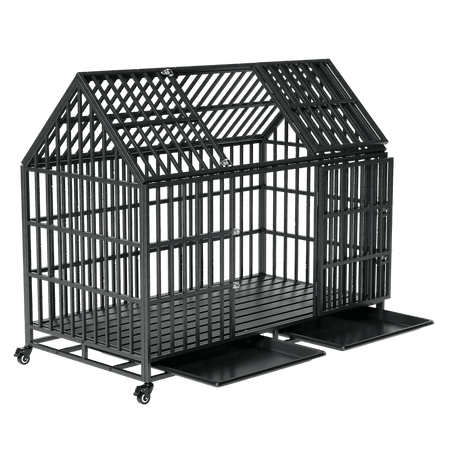 Heavy Duty Dog Crate:This dog crate is built with high-quality, heavy-duty iron to ensure durability and stability. It can withstand significant weight and pressure, providing a secure and safe environment for your pet. Super Spacious Space:This crate provides a generous amount of space, allowing your pet to stretch, stand, and turn around easily. It ensures your pet feels comfortable and not confined. Roof Top :The roof structure is simple to install and disassemble, allowing you to adjust it according to your needs;The roof top not only provides practical benefits but also adds to the overall aesthetic appeal, making it a stylish addition to your home or outdoor area. Wheels and Trays: Equipped with wheels, this dog crate can be easily moved around without the need for heavy lifting. This feature is especially useful for transporting the crate from one place to another; The crate includes a tray that can be easily removed for cleaning. This design helps collect any mess, making it simple to maintain a clean environment for your pet. Upgrade Lock:This dog crate features an upgraded lock mechanism that provides an extra layer of security. It ensures the crate remains locked securely, preventing your pet from escaping or unauthorized access.