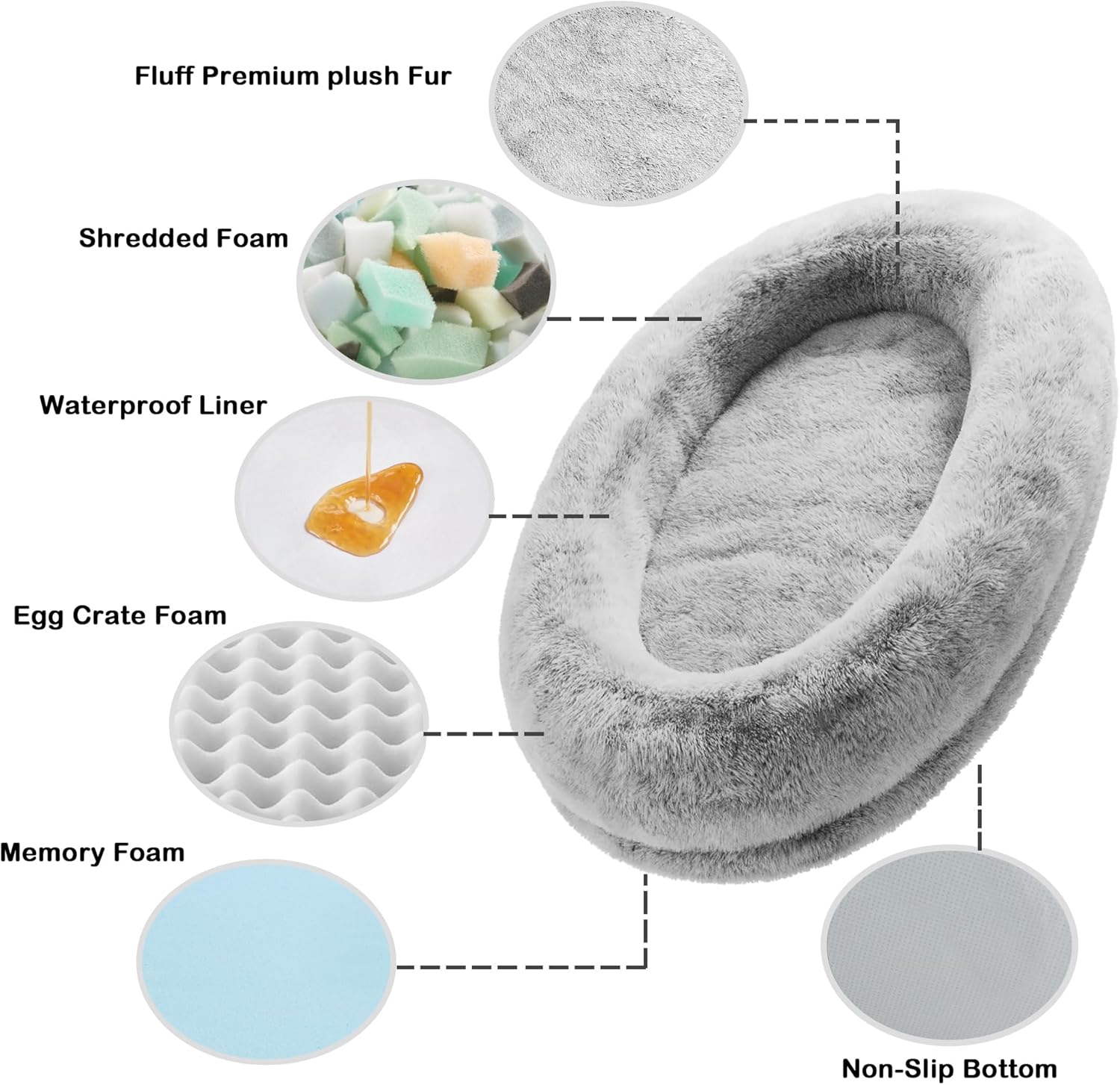 Excellent New Relax: Cozzze Human sized dog bed can provide a new way to enjoy better rest, human size dog bed can even accommodate you and your pet to rest and play in it at the same time.This cozy dog bed allows you and your beloved pet to snuggle up closely, fostering a deeper bond and creating a comforting haven. Experience the true essence of security and intimacy like never before.
