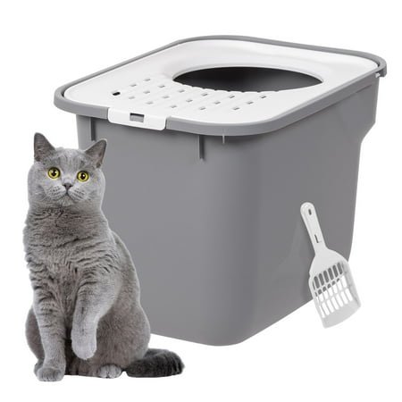 No dogs allowed. Give your cat the privacy they need and keep the dog’s nose out of the litter box with this unique top entry litter box by IRIS USA, Inc. Your cat will love the easy top access that provides them with room to move around and you’ll love how well it prevents messes and odors from spreading. The grooves on the lid create a built-in mat to keep litter from scattering when your cat leaves their litter box and make it easy to sweep the excess litter back into the pan or into the trash. The square shape and lid hook make for quick and effortless cleaning while the molded hook on the body lets you easily hang the included scoop for convenient storage. Let’s make life a little easier for all.