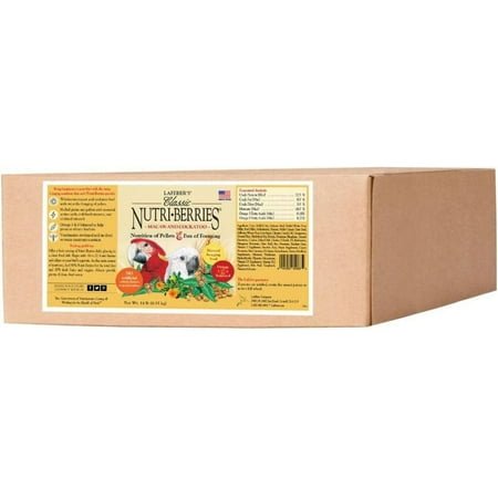 You know the way your macaw holds a walnut in his foot and relishes each bite he takes Or how your cockatoo waves her favorite treat around in her foot as if showing it off for all to see Imagine seeing your bird this happy over a nutritionally balanced food you can offer as a main diet or as a healthy treat. Macaw & Cockatoo Nutri-Berries are sized right to give your large bird something he can sink his beak into. The round, textured, berry shape is designed for your parrot to hold and pull apart to eat; a simple yet effective way to promote foot health and to offer a variety of beak and tongue sensations vital to his behavioral needs. The Lafeber difference is that weve perfected a way to nutritionally balance our foods without sacrificing taste and texture the way regular pellets do. Macaw & Cockatoo Nutri-Berries have all the essential vitamins and minerals, but instead of being ground up and put into a pellet form, the hulled seeds and grains are left whole. Macaw & Cockatoo Nutri-Berries also contain 16.5% pellets bound together with wholesome ingredients, and they are coated with chelated minerals for better absorption and stabilized vitamins for better longevity. Most of the seeds and grains in Nutri-Berries are kept whole because Dr. Lafeber discovered how to nutritionally balance them without grinding, and hulling them keeps the nutrition right where it belongs in every bite. We also balance the Omega 3 & 6 fatty acids to boost your birds immune system and to promote healthy skin and feathers. Our foods are naturally preserved and free of artificial colors, so you can feel good about offering them to your parrot. * All the Nutrition of Pellets with all the Benefits and Fun of Foraging * Omega 3&6 Fatty Acid Balanced * Non-GMO Formula * Made in the USA on the Lafeber Family Farm * Can be Offered as a complete Diet or as a Healthy Treat INGREDIENTS: Corn, Oat Groats, Hulled White Proso Millet, Red Millet, Peanut Splits, Maltodextrin, Hulled Canary Grass Seed, Safflower, Wheat, Soybean Meal, Corn Syrup, Corn Oil, Dicalcium Phosphate, Glycerin, Plant-Based Propylene Glycol, Ground Limestone, Gelatin, Dried Whole Egg, Iodized Salt, Canola Oil, Choline Chloride, DL-Methionine, Citric Acid (A Natural Preservative), Mixed Tocopherols For Freshness, Vitamin E Supplement, Ascorbic Acid, Niacin Supplement, Manganese Proteinate, Zinc Proteinate, Carotene, Calcium Pantothenate, Biotin, Riboflavin Supplement, Sodium Selenite, Pyridoxine Hydrochloride, Copper Proteinate, Thiamine Mononitrate, Vitamin B12 Supplement, Vitamin D3 Supplement, Natural Colors, Folic Acid.