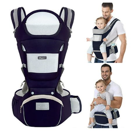 This black & blue baby hip carrier is more functional, we’ve added more storage space to meet dad’s and mom’s daily needs. There are 6 different ways to suit different ages of babies. This infant carrier for men and women will be a good assistant and makes travel more convenient! Please note that the newborn baby should use a horizontal position by the hipseat.