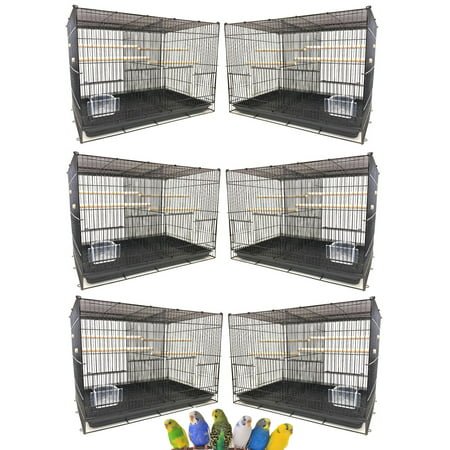 Lot of Six Size: 24″ x 16″ x 16″H With Center Divider With Side Breeding Nest Doors Large Lift Up front door Feeder Doors Clear Transparent Clear Feeder Cups Wooden Stand Perches Slide out bottom tray for easy cleaning. Bird Safe Epoxy Coated Finish Bar Spacing: 3/8-inch Easy to setup
