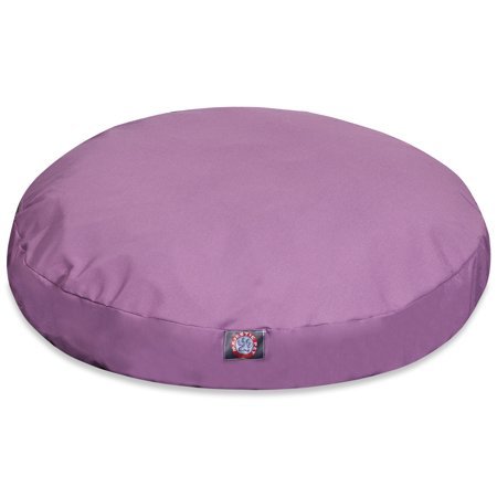 Majestic Pet Treated Polyester Collection Round Dog Bed Features: For indoor and outdoor use Zippered slipcover for easy removal Woven from durable outdoor treated polyester 1000 hours of U.V. protection Water and stain Resistant Water-Resistant 300/600 Denier Base Stuffed with premium high loft polyester fiber fill Machine Washable Slipcover Spot Clean Insert Bed Material: Slipcover: Treated Polyester Filling: Premium high loft polyester fiber Base: Water-Resistant 300/600 Denier fabric Dimensions: Size Small (30″ W x 30″ D x 4″ H) Size Medium (36″ W x 36″ D x 5″ H) Size Large (42″ W x 42″ D x 5″ H) All dimensions are approximate
