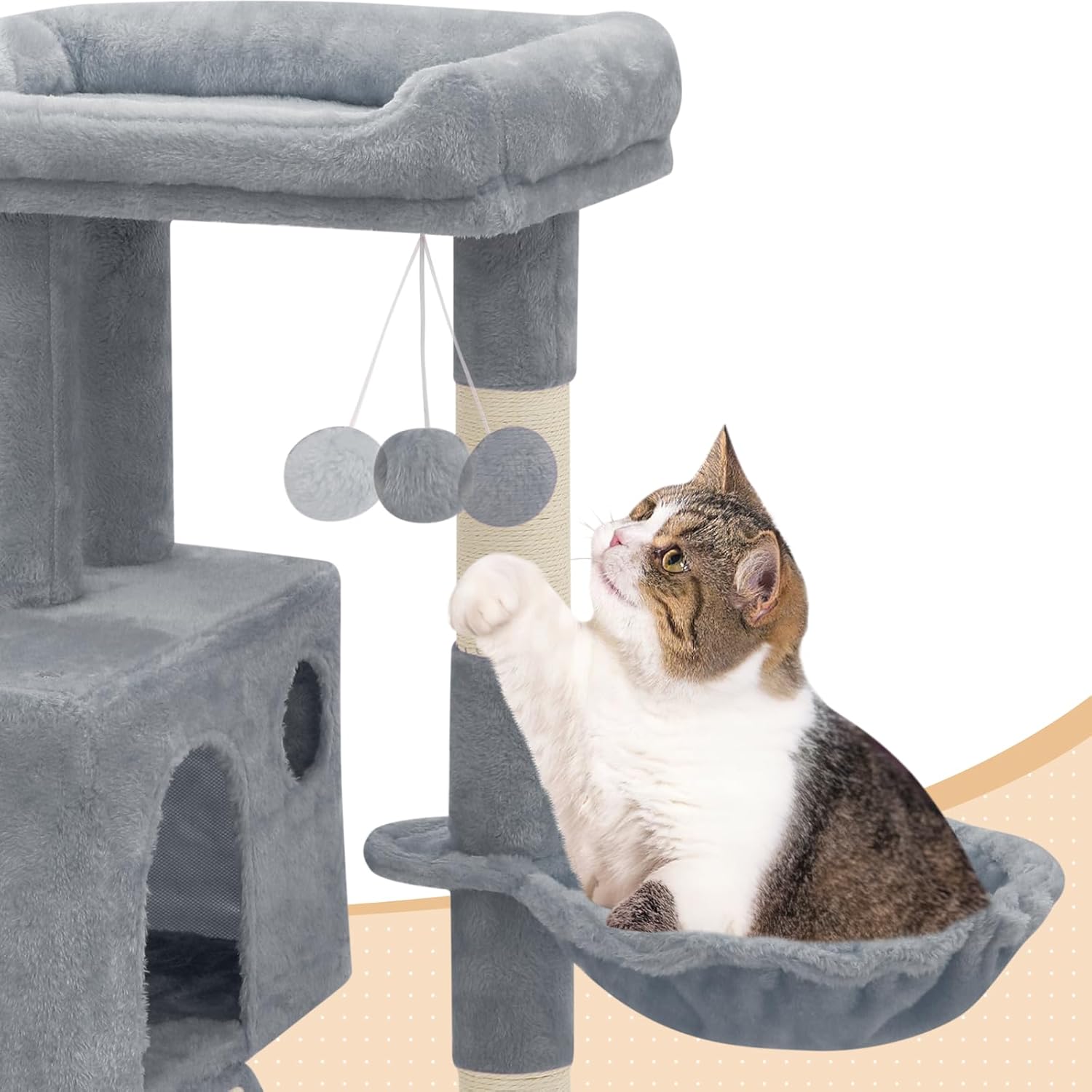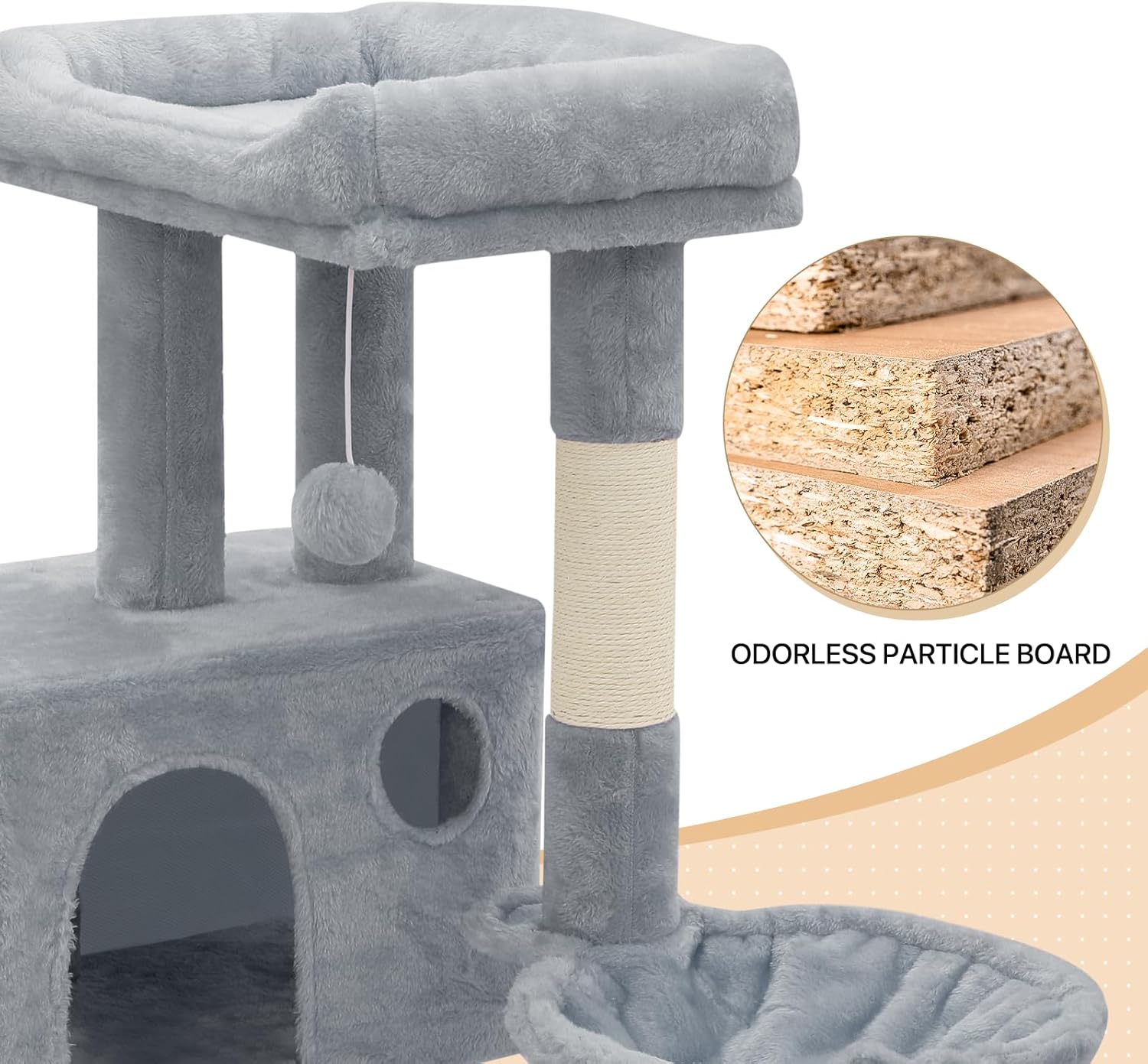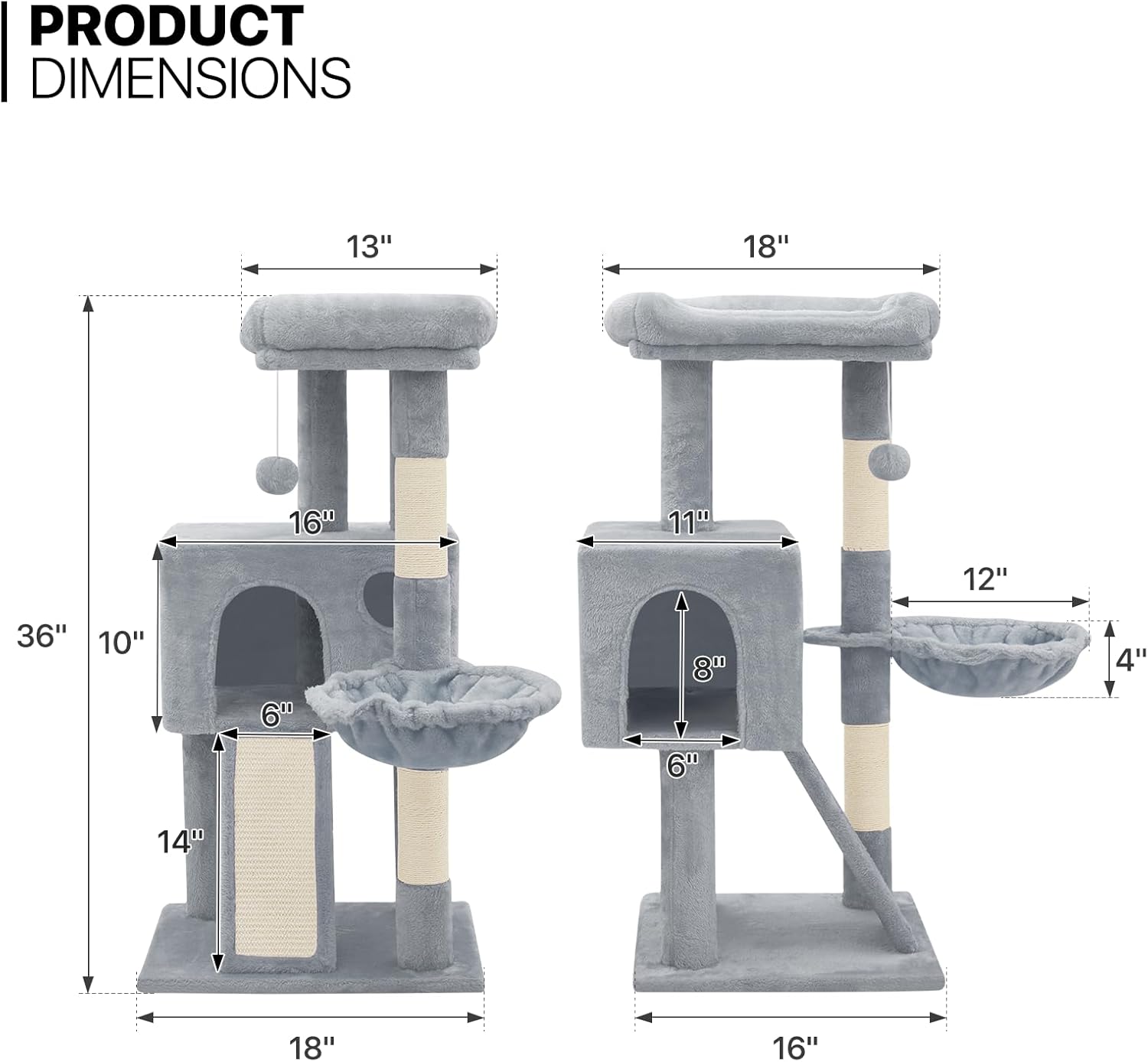 Compact & Cozy Design – This cat tree fits snugly in any corner or against any wall, providing a multi-level playground without taking up much room.
