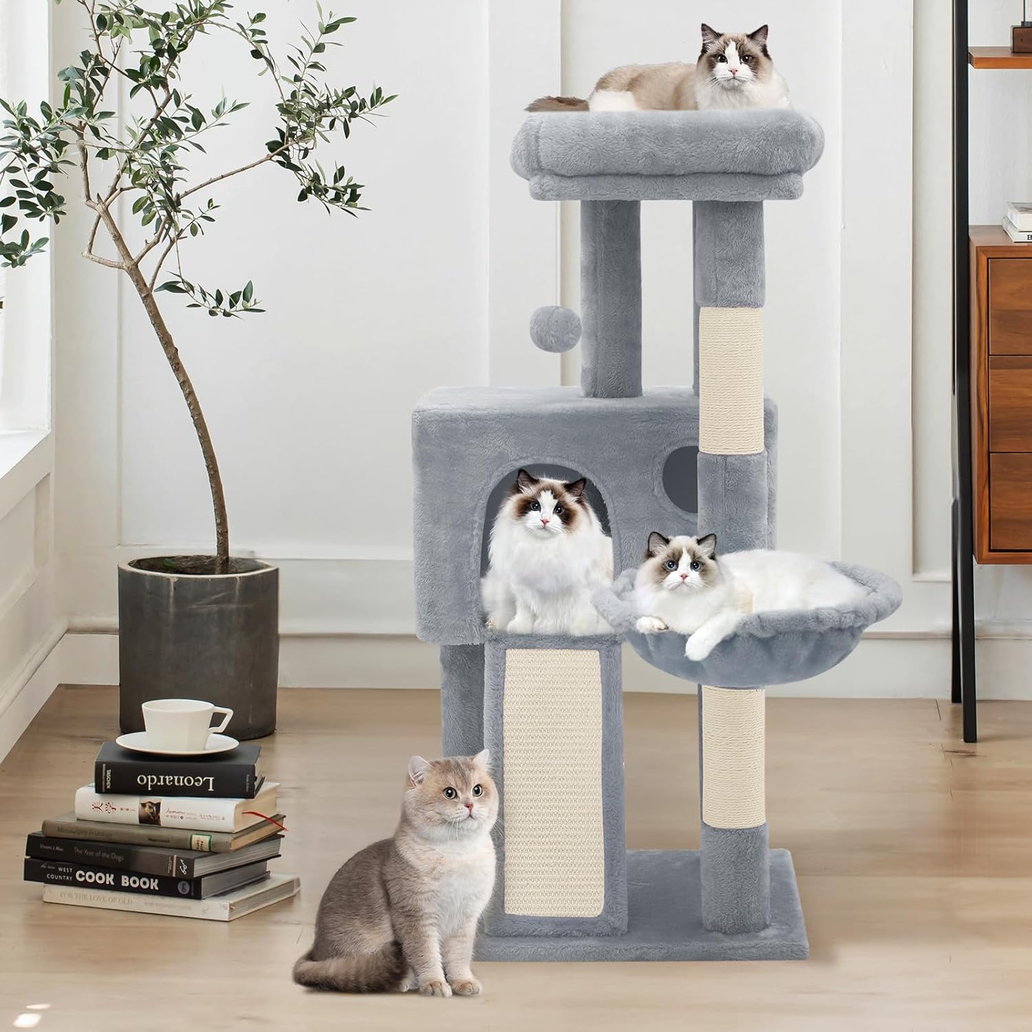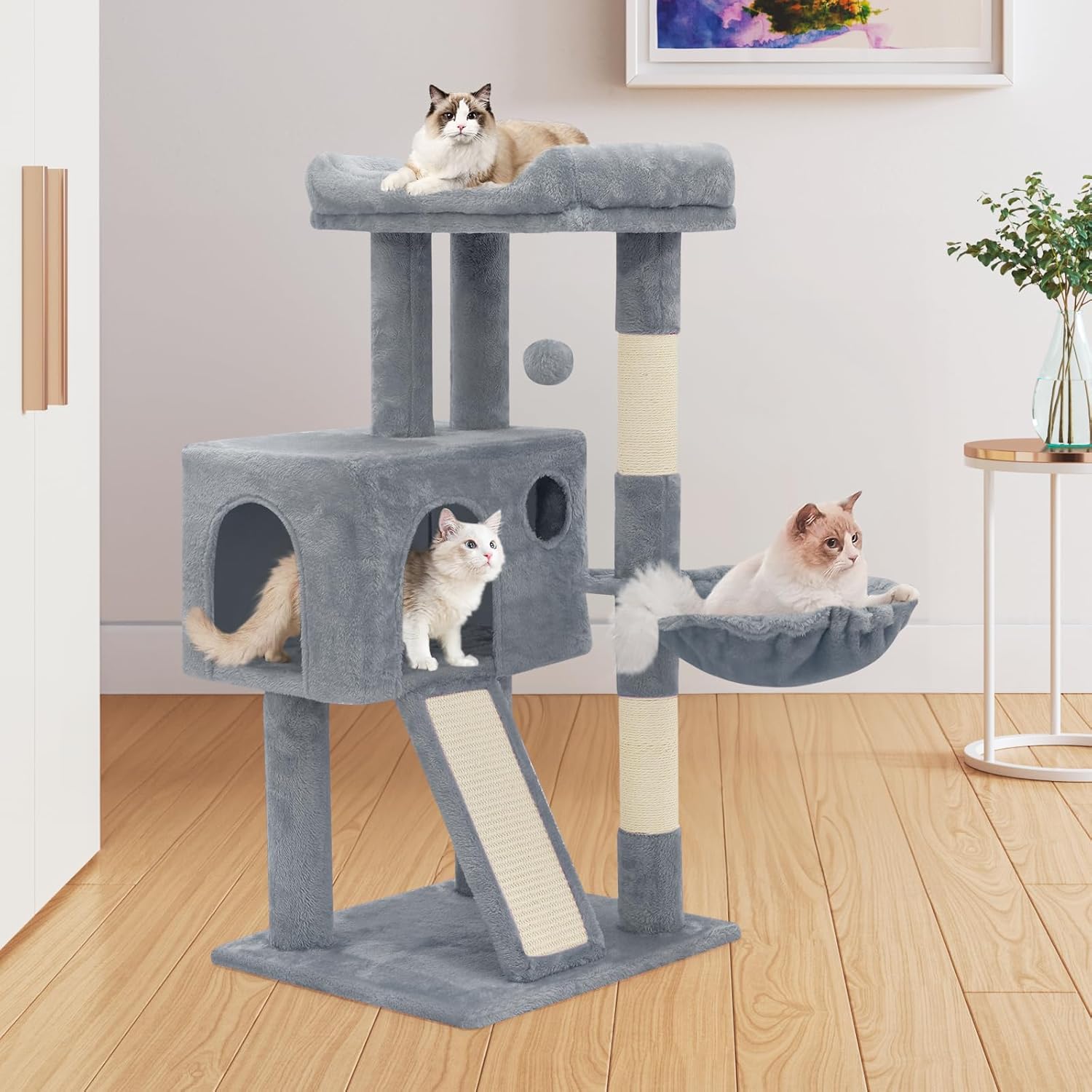 Compact & Cozy Design – This cat tree fits snugly in any corner or against any wall, providing a multi-level playground without taking up much room.