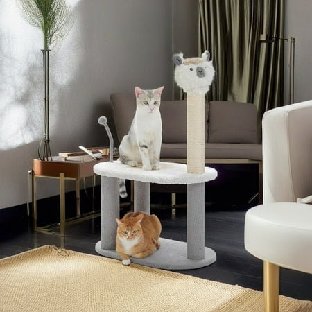 Introducing Pefilos adorable Cat Tree, a perfect blend of style and functionality that is the perfect companion for your beloved cat. This two-tiered cat tree tower is designed to provide a cozy and inviting space for your beloved cat to explore, play and relax. Featuring a unique and adorable shape, this cute cat tower adds a touch of whimsy to your home décor while providing a cozy space for your feline friend to relax and play. This cat tree has two platforms that provide multiple levels of climbing, jumping and napping space to promote exercise and provide mental stimulation for your cat. This cat tree is equipped with a built-in scratching board and sturdy scratching post to promote healthy scratching habits and protect your furniture from your cat’s sharp claws. This cat tree is made of high quality plush, sisal and solid wood to ensure durability and stability, providing a safe and comfortable environment for your cat. The cat scratcher requires minimal assembly work; just screw everything together and the kitty scratcher is ready to use (screws included). Main Material: MDF, plush, sisal Product Dimensions (in.): 23.6 x 13.8 x 35.4 Weight (lbs.): 10.8