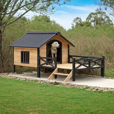 Introducing the Pefilos Large Dog House, perfect for both indoor and outdoor use! Made with quality fir wood construction and treated with kiln-dry and water-proof paint, this pet house is built to withstand harsh weather and keep your beloved pet safe and comfortable. The cat house wire mesh ensures maximum ventilation, while keeping unwanted visitors out. Easy to assemble with only a screwdriver required, the graphic assembly guide and clear labelling on the screws package make building a breeze. The product is delivered in a 5-layer brown box with clear assembly manuals, separated by craft paper to prevent scratches and foam to ensure safe transportation. Give your furry friend the best with the Large Dog House.