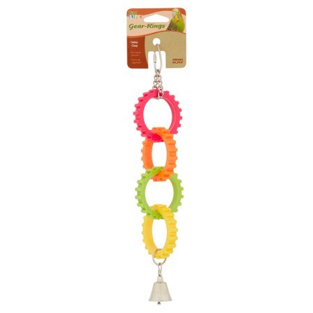Penn-Plax presents the Multicolored Gear Rings Bird Toy with Metal Bell. This bird toy will provide hours of fun exercise for your little one, as they stay busy and engaged by climbing up and down, or by joyfully ringing the metal bell at the bottom! This toy is great for Parakeets, Cockatiels, Lovebirds, Parrotlets, Conures, and other small to medium birds!