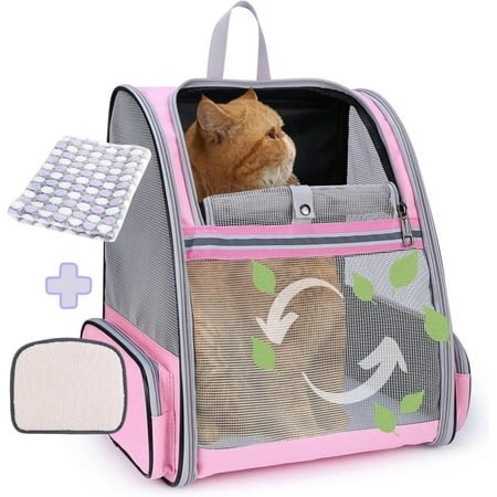 🐱We offer a 2-side mat and a flannel blanket! FULLY BREATHABLE MESH DESIGN:This cat backpack carrier is three-sided mesh, providing a safe and comfortable travel for your pet. Fully mesh design ensures ventilation and visual-ability, suitable for pets to travel for a long time. 🐱AN OPENING WINDOW FOR YOUR PET TO HEAD OUT: Front window can be easily opened and let your cat head out.It’s nice to reach in and pet her when she’s nervous. Leash attachment provides extra security when using this feature. 🐱LIGHT & COMFORTABLE: This cat backpack helps you hands-free carrying and makes it the most safe and convenient pet backpack carrier bag for your travel. There’re two entrance—big side door and top window for getting in and out conveniently. 🐱ITEM DIMENSIONS:15.2″ L x 11.4″ W x 16.5″ H. Perfect pet carrier backpack for cats and small dogs up to 16-pounds.It’s portable,easy to store. Most AIRLINE APPROVED under seat. Important: Please Check your airline requirements before traveling. 🐱DURABLE & FUNCTIONAL: The ventilation mesh is made of superior material which is scratch-resistant and sturdy for long lasting use.The side pouches is also perfect for a can of friskies or a bag of treats! Product Description Lollimeow cat backpack-Great Ventilation Mesh Design Safe Latch Hook Inside Insures Security When Open the Window Comfortable, Lightweight & Roomy 2-side mat and an extra Flannel blanket(softer and warmer) (If you did not receive the blanket, please message us and shipping will be rearranged) Enjoy outdoor playing time! OPEN WINDOW ENJOY THE VIEW Give your pets better outdoor experience. They can enjoy the veiw just like you! You can carry the backpack in the front of your body. The front opening is nice to reach in and pet him when he’s nervous. Don’t worry about the safety. The built-in leash lock will ensure the security VENTILATION AND VISUAL-ABILITY The three-side mesh will not only provide a safe and comfortable travel for your pet, but also ensure ventilation and visibility,easy to check your pet. The padded adjustable shoulder straps help you hands-free carrying, making it the most safe and convenient pet carrier bag for your travel. A backpack with window Item Dimensions 15.2″ L x 11.4″ W x 16.5″ H. Suggested Weight: 0-16lbs Pets Most Airline Approved under seat. Important: Please Check your airline requirements before traveling. Cats Love to Keep a Close Eye on Their Surroundings. Clear window makes it come true that cats are able to see everything and bring travel more fun. You can carry the backpack in the front of your body. The little opening on one side is nice to reach in and pet her when she’s nervous. Built-In security leash makes sure the safety. Buckle her up in the front seat and he gets a view of the outside world while still being inside his little bubble. Attention: Amazon sometimes sends you the returning item from other buyers by mistake. Therefore, if you receive suspected second-hand goods (with pet hair), please message us. We’ll send replacement and compensation! Thank you soooo much for your understanding and cooperation! Lol