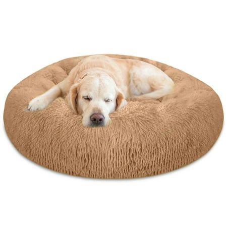 ? HIGH-QUALITY MATERIALS: Made of durable luxurious PV villus. Filled with soft PP cotton to help your pets restful sleep for improved behavior and better health. The bottom comes with Non-skid silicone dotting for your pet’s safety. ? SECURE & COMFORTABLE: Ergonomically designed for your pet’s comfort. Designed as an anxiety bed for pets, the round shape helps your pet curl and burrow like it would in a natural environment, and the rim provides head and neck support. ?️ LIGHTWEIGHT AND PORTABLE: Folded, tucked easily for quick transport and carried conveniently in the car. This could let your pets stay comfortable while traveling and camping outside. It can increase the time you spend with your pet. ? SUITABLE 3 SIZES: We recommend a 20-inch dog bed for small dogs (up to 11 pounds), a 28-inch for medium dogs (up to 40 pounds), and a 35-inch dog bed for Large or X-Large dogs (up to 55 pounds), Please measure your pet before buying. ? EASY TO CARE: Machine washable; No more worries about pet odors, dirt, or excessive hair. Wash with cold water in a gentle cycle and tumble dry low; Notice: Please shake it after receiving and leave it for a while, it will return to shape.