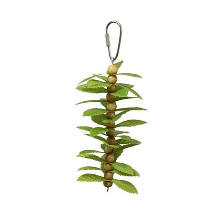 Playfuls Leaf Kabob from Prevue Pet Products is a multi-sensory activity toy, designed to entertain and engage birds on all levels. Preen & Pacify toys function as stress-reducers and help keep birds active and content. Engaging with a variety of materials and textures is a calming, satisfying and healthy activity. As birds pluck the folded pieces on this toy, their preening instincts are satisfied and your bird becomes calm. Designed for small to medium sized birds, this durable toy that will engage them for hours. This pet-safe toy is made using a quick-link, sisal rope, wood blocks, and banana leaves. Toys are hand-made in Indonesia and can vary slightly in shape and size. Measures approximately 8″ high by 3″ long and 1/2″ wide. Toy can vary slightly in shape and size. Supervise your pet at play. Inspect toy regularly and replace when used or worn.