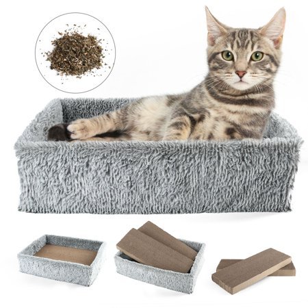 PrimePets 2 in 1 Cat Scratcher Lounge with Removable Cardboard Durability Corrugated Cardboard The cat scratching pad is made of long lasting recycle corrugated paper, which is made to last, safe design for satisfy the cat scratching needs Function & Fun The cat scratcher bed promotes healthy claws through natural scratching & allows your cat to play, scratch, stretch, hide, and more It’s a wonderful source of exercise, a terrific stress reliever, and it will improve your cats overall wellness as well as balance Meets Your Cat Scratching Urges Comfortable natural cat scratcher for your cat is more ergonomic than other cat scratching products such as a cat scratching post, cat tree, or cat tower Also doubles as a place for cats to lounge and hang out and turn it into a cat house or cat bed Free Catnip Included The 2 in 1 cat scratching sofa comes with natural sprinkle catnip and 2 cat scratching pads, which removable inserts provides more fun and durability for scratching/ playing Attracts your cat and helps you entice your cats to have good scratching habits