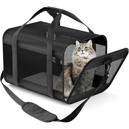 【Nice Size for Small Pets】This soft sided cat carrier measures 16.3″ L x 11.8″H x 12.4″W. Fit Pets up to 15″L x 10″H and up to 14 lbs. It ensures ample space for your pet to move while maintaining portability 【Airline-Approved for Easy Travel】Certified by major airlines, this airline approved pet carrier allows your pet to fly with you effortlessly. Whether for long or short trips, this pet travel bag offers immense convenience for both you and your pet 【Unique Design for Pet and Owner】The durable mesh design ensures ventilation for smooth breathing while providing privacy to reduce your pet’s anxiety in public. Pets can’t open this pet carrier by themselves due to the self-locking zipper. The padded shoulder strap ensures your comfort, even during long travels 【Durable and Waterproof Material】Crafted from durable and waterproof material, this soft cat carrier maintains excellent performance in all weather conditions. It protects your pet from rain or mud. The detachable wool pad at the bottom is soft, supportive, and easy to clean, providing a cozy resting place for your pet 【Versatile Carrying Options】This pet carrier offers multiple carrying options like hand carry, shoulder strap, luggage attachment, and car seat placement, accommodating your needs in different scenarios, from airports to road trips
