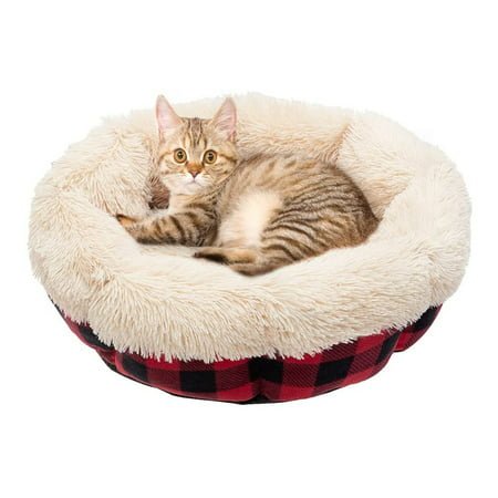 Description: Pupteck Winter Cat Bed Mat – Furry Donut Pet Bed for Small Dogs & Cats, Soft Plush Pet Bed Self Warming for Puppies, Kittens Improve Sleep Quality: The round donut shape makes the cat bed looks cuter, and it supports better sleep for those pets who like curling up when sleeping. The raised edges can give pets more security and provides head and neck support. Soft & Warm: The first layer of the cat bed is soft plush, the second layer is high-quality acupuncture cotton which can store heat and keep pets warm in the cold winter. The whole feeling is just like a mother’s fur coat that can let pets feel warm and calm. After your pet has a good sleep, his body will get better and better. Size : 23″ in diameter, 9″ in height, suitable for cats, small dogs, puppies, and other small pets. The bed almost fits any place, such as a bedroom, living room, balcony, garden, cars, etc. The colors are with beige and red-black plaid, classic but never out of date, which can be perfectly integrated into any place. No Disturb: The bottom of the cat bed is designed with oxford cloth with bumps which can prevent from sliding. Your cat will have a comfortable complete sleeping, even if he turns over during sleep, the bed will not move, which will not affect the pet’s continued sleep. Besides, the non-slip bottom can make sure your floor won’t suffer any hurt. Self Warming: Cold weather is coming, this bed will provide warming in the whole winter, your cat will have much happiness if you send this gift to him(her)!