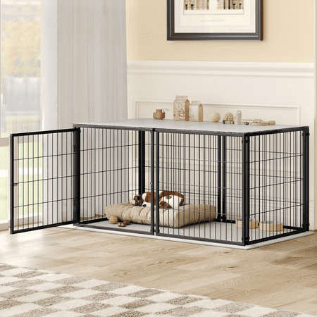 🐾 【Heavy-Duty Metal Build】High-tensile steel wire frame with rust, corrosion, and fade-resistant coating —ideal for small to medium dogs. 🔒 【Secure Top Cover】Prevents escapes while supporting items with optional PVC top plate; adds functionality to your pet’s space. 🚪 【Flexible Door Placement】Install doors on front or side to fit room layout. Smooth open/close action and durable locks ensure pet safety. 🛠️ 【Tool-Free 20-Min Assembly】Connect panels via simple connectors—no extra tools needed . Customize size using additional frames; doors ready to use out-of-box. 📏 【Spacious】Fits 2 small dogs (<40lb each) or 1 large dog (<80lb). Measure pet’s height/length first for optimal comfort, Functions as both an indoor playpen and secure containment space, ideal for training or daily use Brand QNACPY Product Dimensions 48"L x 26.3"W x 23.8"H Material Metal Specific Uses For Product Indoor Special Feature Adjustable