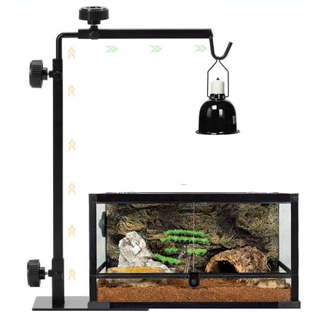 Height and Length Adjustable: Both ways could be adjusted to the perfect length you want, adjustable range: height 35-66cm/14-26inch; Length 18-28cm/7.1-11.8inch. Set the optimum distance, make your reptile more comfortable. No Lamp Included Easy Installation: Dinosam reptile light stand can be used with other reptile lamps such as heat lamps. Easy to assemble, in order to keep the light stand stable, you’d better use the Reptile tank or a heavy object to press the base. Detachable design for easy storage Functional Design: The lamp holder bracket is designed to accommodate different heights and suspend lamp device above terrarium securely. Fixed wire casing can be used to fix wires tidily alongside the stand. Classic black hook for easy suspension Wide Application: Suitable for different sizes of pet boxes, widely used in variety of reptiles,plant and amphibians, including hermit crabs, bearded dragons, tortoises, turtles, geckos, lizards, frogs, spiders centipedes, succulent plants’ light fixtures Steady Standing with Durable Material: Detachable reptile bracket is made of high-quality heavy metal, anti-deformation, anti-rust, sturdy strong and durable, can be used for years, detachable design for easy storage