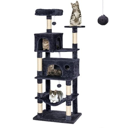 Can’t find stable&space-saving cat tree? 67-inch Tall Cat Tower is Designed for Indoor Adult Cats The vertically designed tall cat tower meets the daily interaction needs of adult cats such as climbing, jumping, and resting. Comfortable cat furniture for cats Cat Tree for Indoor Cats Large Adult This indoor large cat tree isn’t just furniture— playground for Adult cats. multi-levels tall cat tree, gives your cat the vertical space crave to climb, satisfy that natural urge to be “on top.” Sturdy perches wrapped in soft, scratch-friendly fabric offer perfect napping spots,The wide base ensures stability. Whether sharpening scratch posts, lounging atop or pouncing between platformst—keeps cats active, happy, and out of mischief. Blend of function and style, it complements your decor. The height at the top perch is the cat’s favorite window viewing area. The large cat condo and cat hammock give the cat a sufficient sense of security. This is simply a cat’s exclusive paradise and its most ideal present.