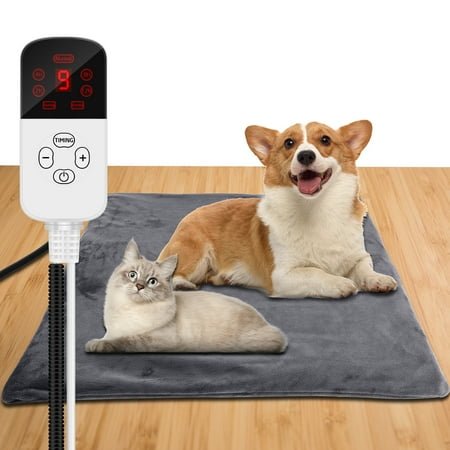 Smart Home Pet Heating Pad 18″x18″ 9-Level Adjustable Temperature Bed with Timer, Grey 9 adjustable temperature levels (86-131℉/30-55℃) with timer for auto shutoff 7-layer safety structure including soft velvet cover, waterproof film, and flame-retardant fabric Special PTC sensor monitors temperature to prevent overheating Durable design with a 2.1m bite-proof power cord protected by a steel sleeve Ideal for senior, arthritic, newborn, or recovering pets to keep them warm and comfortable Removable cover for easy cleaning