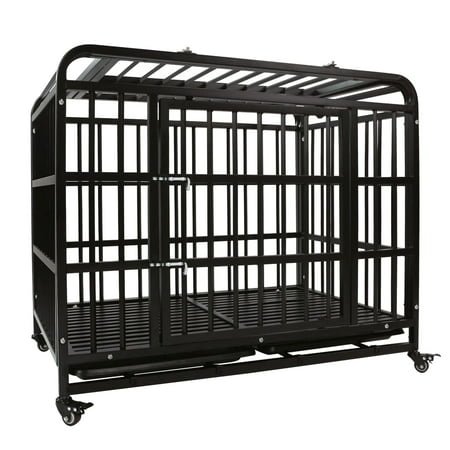 Product Name: Heavy duty dog crate Material: Industrial corrosion resistant carbon steel Accessories: Upgraded lock, lockable wheels, removable tray Sizes: 38″, 42″, 46″ Suitable: medium dog, intermediate dog, big dog, giant dog, large breed dog, extra large dog Feature: Sturdy – Our strong metal dog kennels are made of heavy-duty steel, which can resist the dog’s sharp teeth and have good bite resistance Breathable – Square tube at the right distance and raised floor, provide better breathability when in the impact dog crates, allowing your petmate to get fresh air, provide a wide field of vision to avoid anxiety at the same time Mobile – Four 360-degree casters, can move the drop cages at any time, and lock to ensure the safety of the dog in the large dog crate Easy to clean – The removable plastic bottom tray makes cleaning the indestructible dog crate easy, so you don’t have to worry about getting dirty floors Easy to Assemble – You just need to screw the panels, then install the tray support rails and wheels, it will take about 10 minutes Escape Proof – Upgraded latch of front door are also hard to open for smart dogs Comfortable – We took into account the size of most dog feet and used a floor grid that fits the distance. It will also be comfortable for dogs that stay in the industrial dog crate for a long time Application – Our welded crates can be used indoor or outdoor, and can also be used as commercial dog cages in pet stores, pet hospitals. The durable frame also keeps the dog safe when you need to transport it