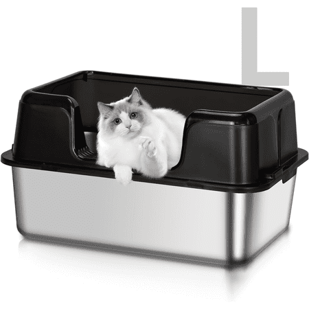 【 Latest Stainless Steel Cat Litter Box Solution】Still struggling to replace your cat’s litter box? Upgrade to our extra-large stainless steel cat litter box, designed to last up to 5 years without deformation. Unlike plastic options, our metal litter box simplifies cleaning—won’t leave odors or cling to litter, as little as 20 lbs. Of litter for the best results. 【 Semi-Enclosed】The open top pet litter tray allows you to easily monitor the cats behavior, keep track of the cleaning time, and increases air circulation.large cat litter box with large U shape lowered front design, spacious, kittens and short legged cats can also come in and out easily. 【Easy to Clean, No Odors】The stainless steel kitten litter box is made of high quality abs material and 304 stainless steel. The top entry litter box will not absorb any odors. The smooth surface is non-stick and easy to clean. 【 Large Size and High Capacity】This extra large litter box measures 23 inches x 16 inches x 12 inches to comfortably accommodate large cats and multiple kittens. Large capacity for 20-40 days of clean, worry-free use. 【 The Perfect Gift】Still struggling to choose a gift? This large cat litter box will be the perfect gift for your kids, neighbors and friends!The home becomes cleaner and everyone lives in a warm atmosphere.