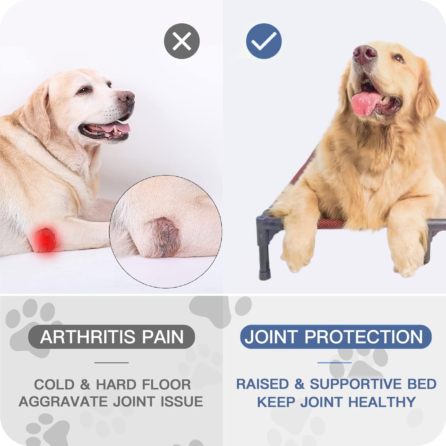[Durable Dog Cot]] The breathable Teslin cover provides a cooling effect for your pet, while the sturdy 0.8mm thick steel pipes and extra support bars offer excellent weight capacity and stability.
