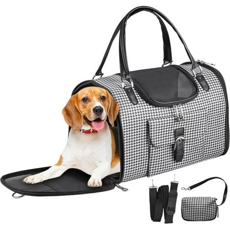 Airline Approved Carrier – Airline-approved design lets you take your pet with you wherever you go. This pet carrier features two connecting loop handles for balanced carrying as a dual seat belt or luggage strap for secure transport Stay Cool and Calm – Our pet carrier features a breathable mesh design that ensures optimal airflow. Ideal for both cats and dogs, this soft, ventilated structure keeps your pet relaxed and comfortable during travel Both Sizes and Weights – The Mediun Cat Carrier is designed for small and medium sized pets within 14″ x 9″ x 6″ (smaller than product) and 15 lbs. Please do not choose your carrier based on weight alone. Consider your pet’s length and height when selecting a carrier size Versatile Cross-Body Function – Transform your travel experience with our cross-body function pet carrier. Switch between handheld and cross-body options with ease, making it a convenient choice for any pet carrier, whether you’re carrying a cat or a puppy Secure Internal Leash – Keep your pet safely in place with our internal leash, designed for both cat and dog carriers. This feature prevents escapes and ensures your pet remains secure during your travels, whether you’re flying or driving
