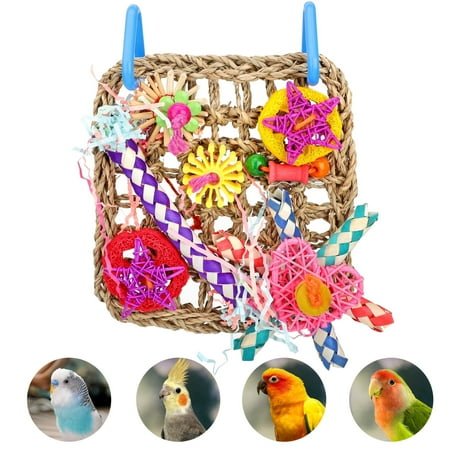 Made from natural materials like wood, bamboo, loofah, rattan, and weaving, safe for birds to chew and peck Sturdy materials ensure long-lasting durability for extended use Keeps birds mentally stimulated and physically active Help alleviate anxiety in birds, especially when they are alone or lack stimulation Comes with two randomly shaped hooks for effortless hanging Package Includes: 1 x Bird Edible Seagrass Woven Climbing Toy