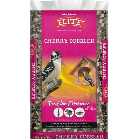 Your yard will be the squawk of the town when you add Elite Cherry Cobbler Bird Food to your feeder! This blend of gourmet seeds and fruit isnt just delicious, its also packed with protein and fat to help your local birds thrive through all four seasons. Infused with the essence of berries, this bird feed is bursting with sunflower kernels, black oil sunflower seeds, cherries and more. Plus, this energy-rich blend is fortified with vitamin A and D3 to help your feathered friends grow and reproduce while encouraging feathering and bone development.Ingredients:Sunflower Kernels, Black Oil Sunflower, Peanut Pieces, Safflower, Raisins, Pistachios, Dried Cherries, Vitamin A & D3 Supplement